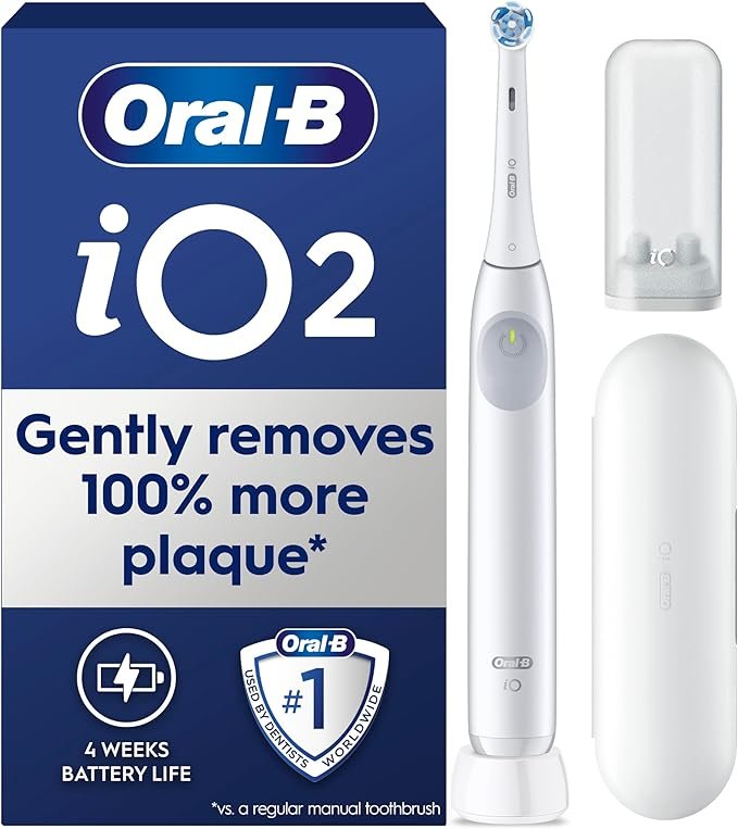 Oral-B iO2 Electric Toothbrush, 1 Gentle Care Toothbrush Head, 1 Travel Case, 1 Travel Refill Holder, Toothbrush for Adults (Calm Pink), Designed by Braun, 2 Pin UK Plug