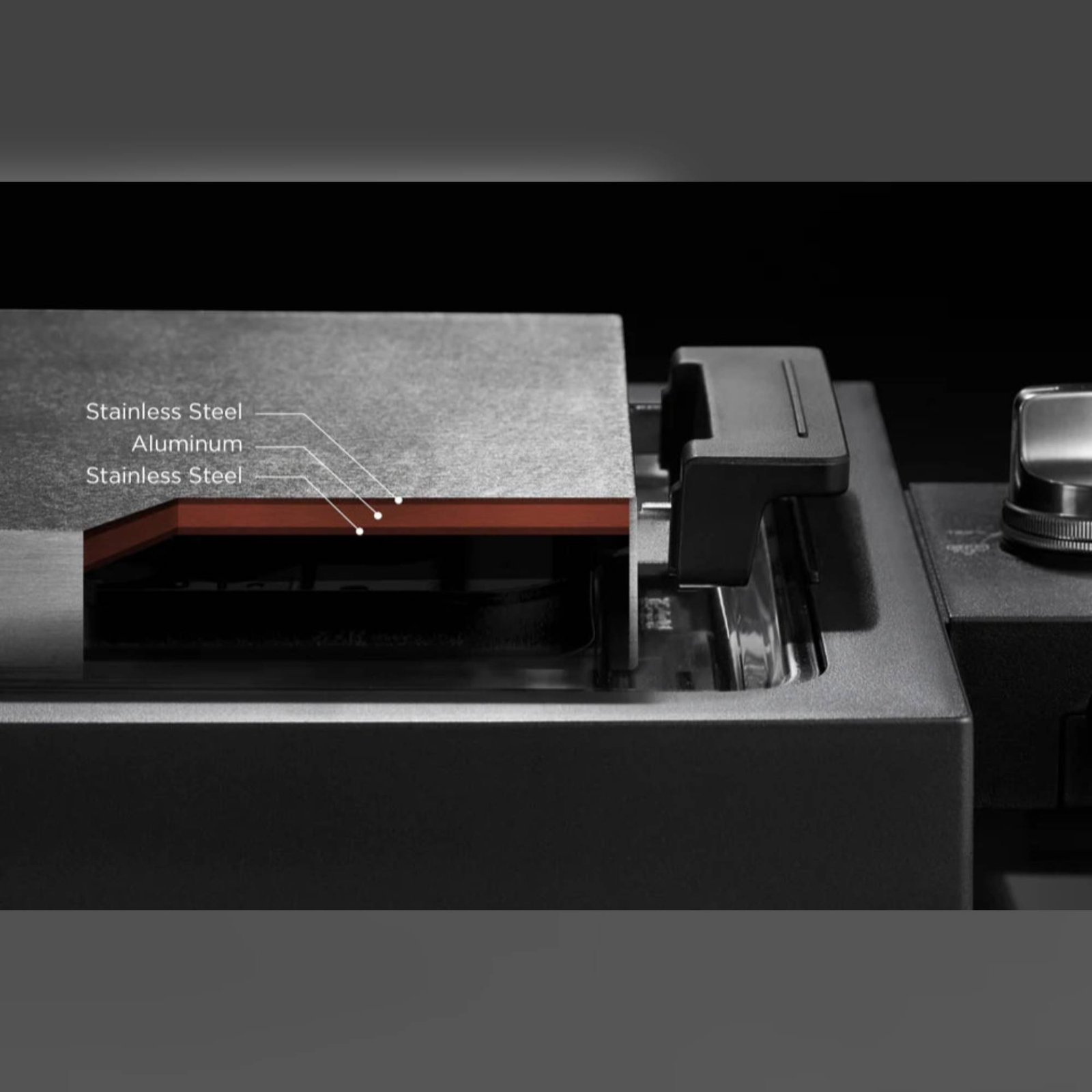 6.6mm clad plate for superior heat retention: The 6.6mm-thick plate combines stainless steel and aluminum for optimal thermal conductivity. ensuring stable temperatures and even cooking—unlike standard griddles under 3mm thick.
