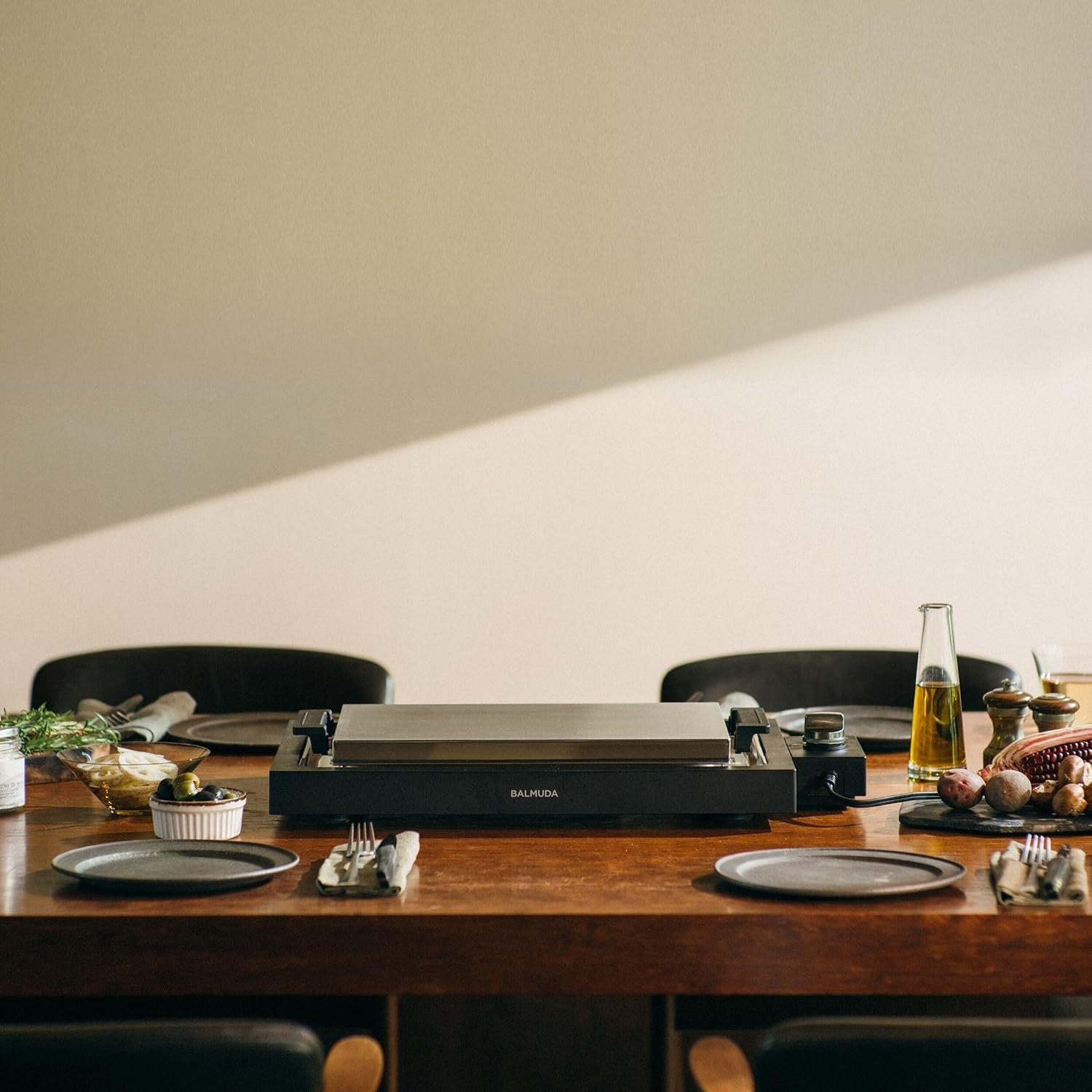 BALMUDA The Teppanyaki brings the thrill of tableside cooking to life with its high-heat steel-clad plate that locks in flavor. Its minimalist design elevates every meal. turning cooking into a special occasion with precise temperature control.