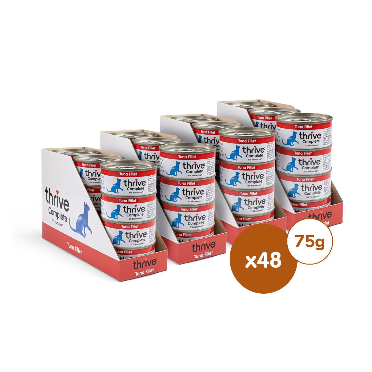 Made with tuna fillet as the only source of protein. Thrive Tuna Fillet Complete wet cat food is cooked in fish broth with added vitamins and minerals to give your cat a complete nutritionally balanced meal. This food is complete. which means it can be fed on its own or with our Thrive PremiumPlus dry food. depending on your cat’s preference.