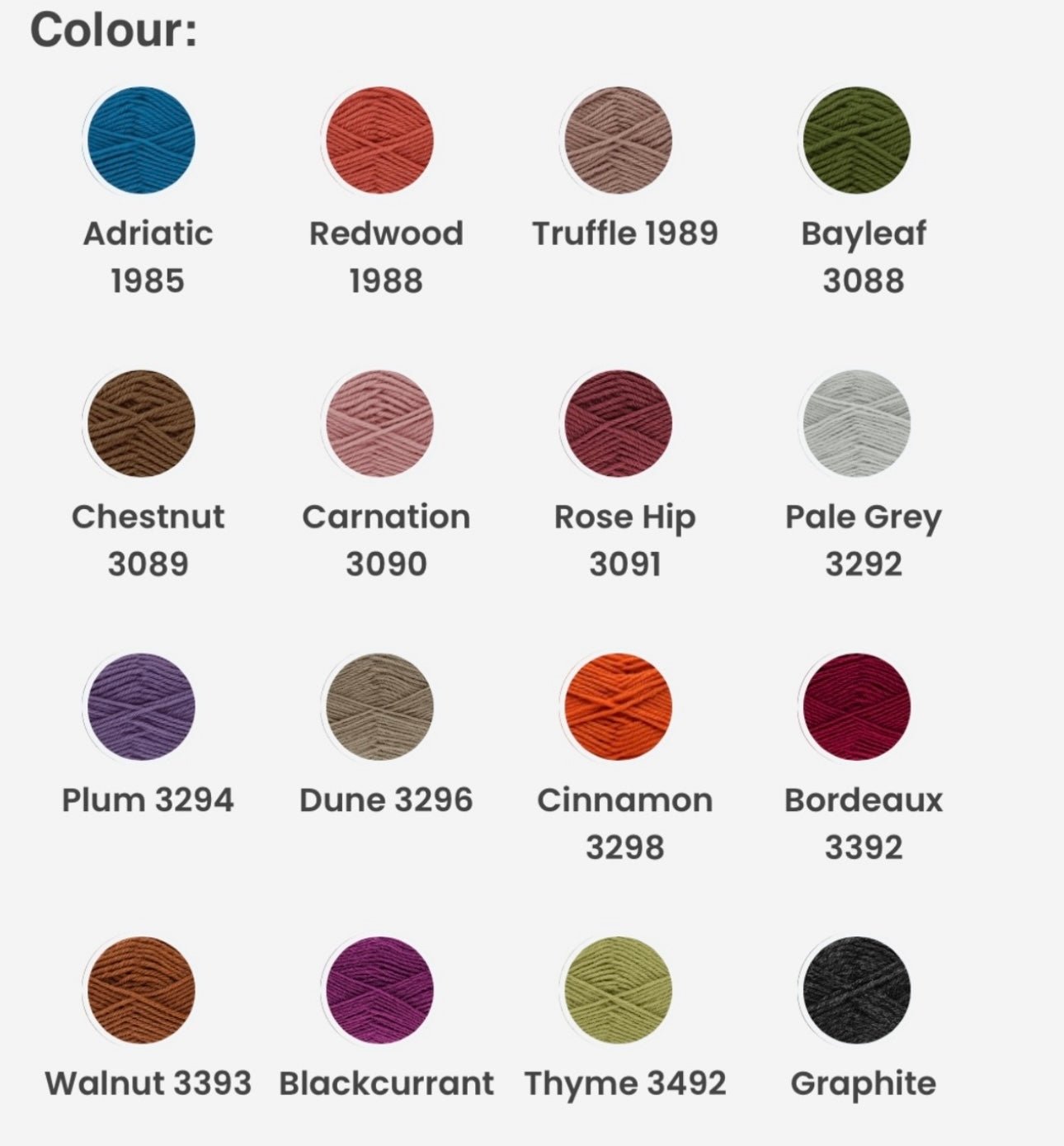 For your information: Yarn and embroidery thread colours to be found in product images.